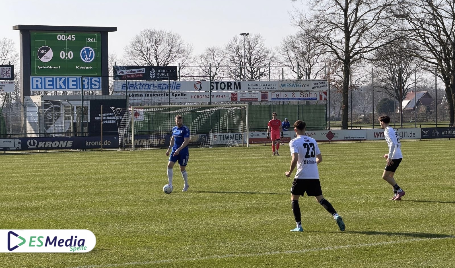 Zum letzten Spiel der englischen Woche gegen Verden änderte Spelles Trainer Henry Hupe seine Startformation im Vergleich zum Derby vier Tage zuvor beim Schlusslicht SV Holthausen Biene (3:3) auf vier Positionen. Felix Golkowski, Jan Popov, Tjark Höpfner und Adrian Lenz standen von Beginn an auf dem Platz. Leon Dosquet, Anton Popov und Niklas Oswald saßen zunächst auf der Bank. Jost Krone fehlte im Spieltags-Kader.