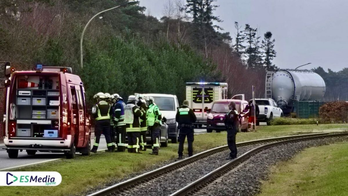 Spelle – Am Dienstag, 24. Februar 2026, ist es gegen 14:00 Uhr in der Hafenstraße zu einem größeren Einsatz von Feuerwehr und Rettungsdienst gekommen.