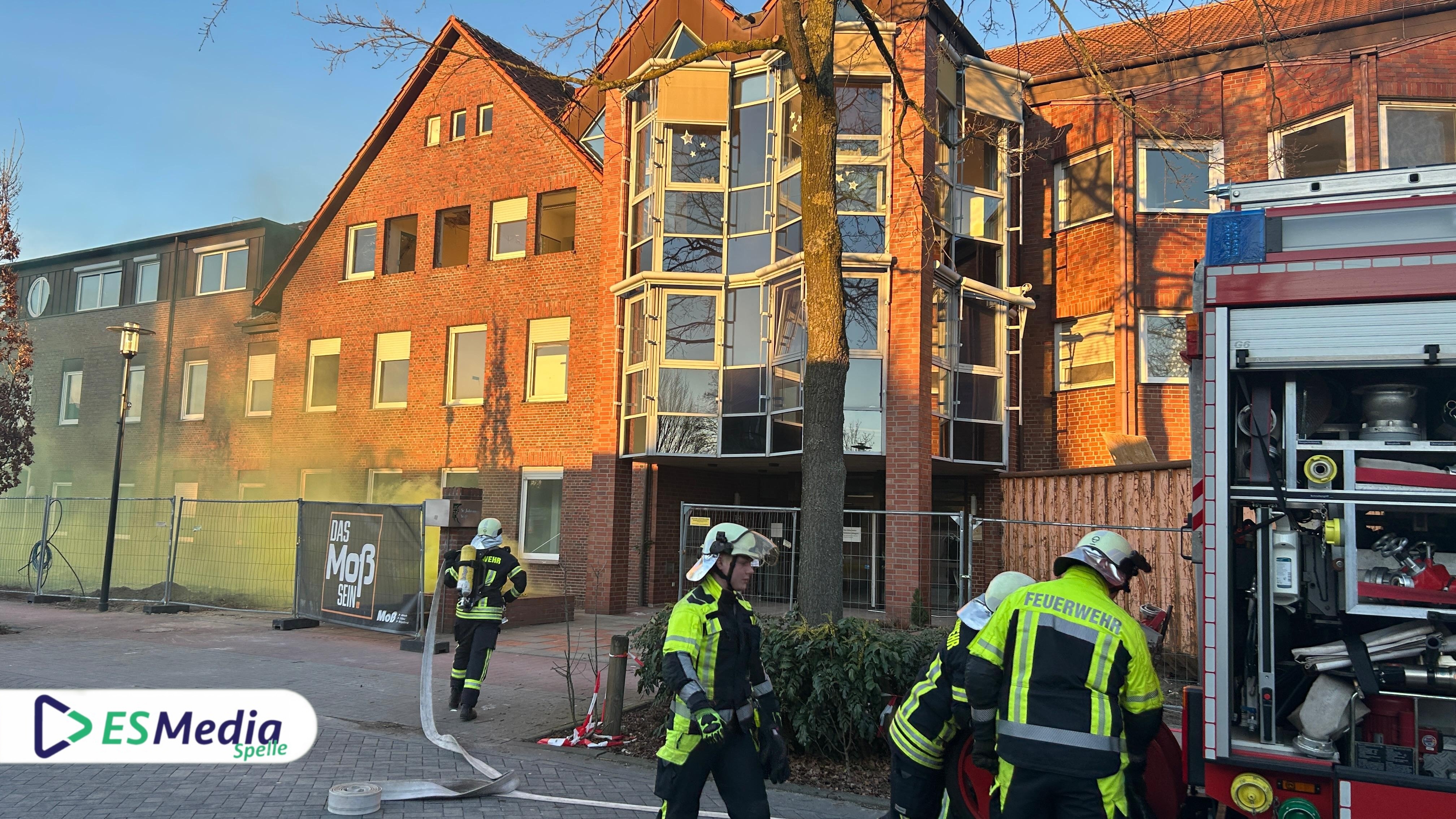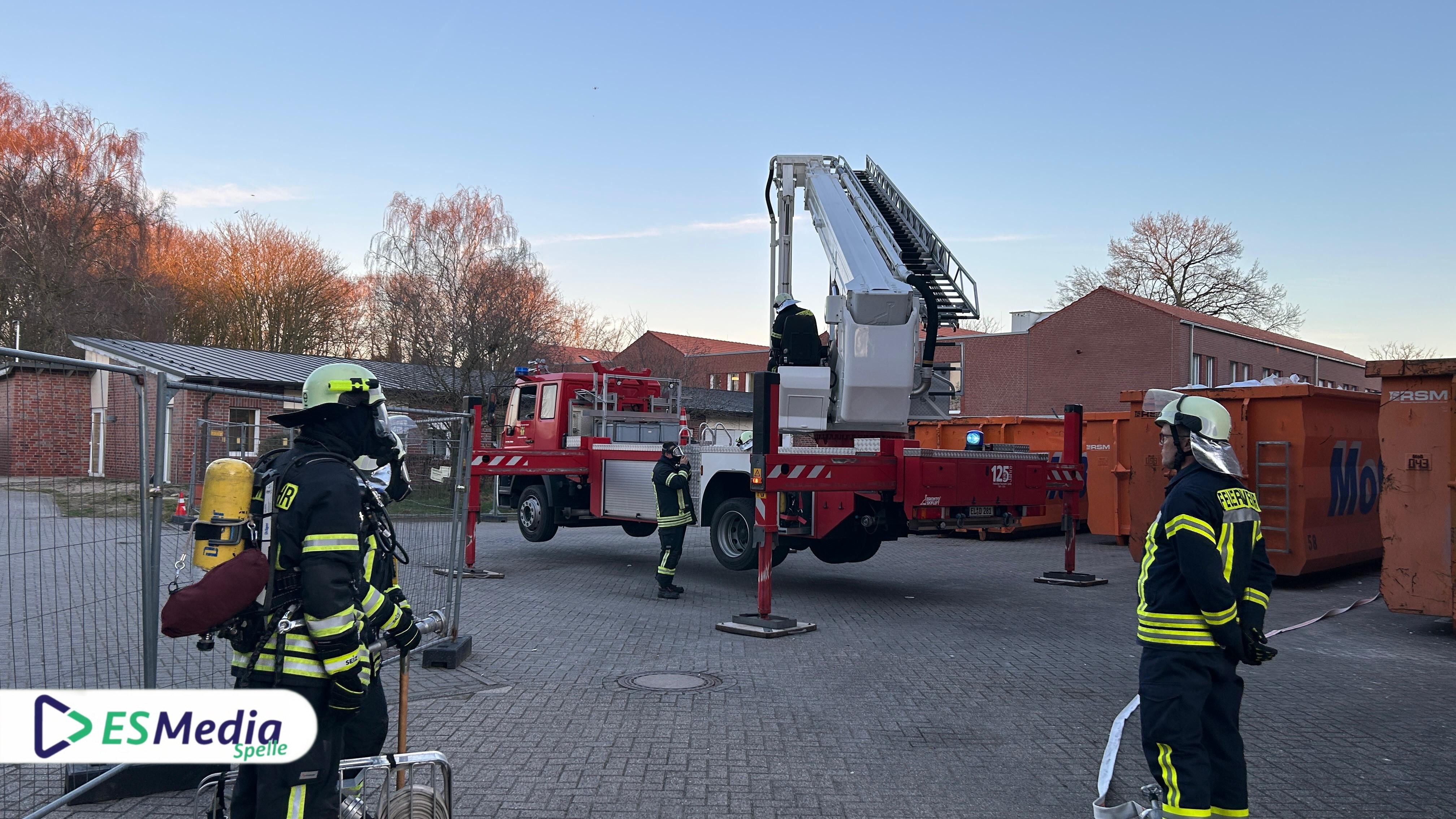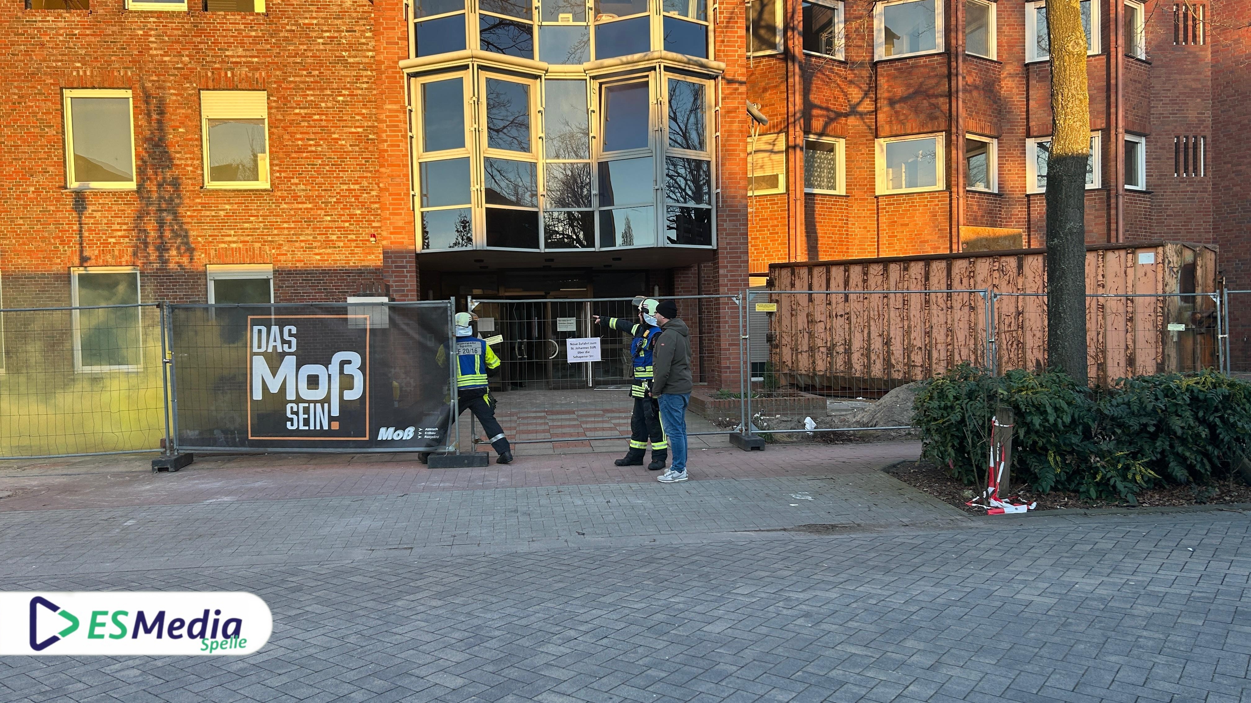 Als Übungsobjekt diente das leerstehende Gebäude des St.-Johannes-Stift an der Johannesstraße in Spelle, das in Kürze abgerissen werden soll. Die besondere Lage des Objekts ermöglichte es, ein realistisches Einsatzszenario darzustellen.