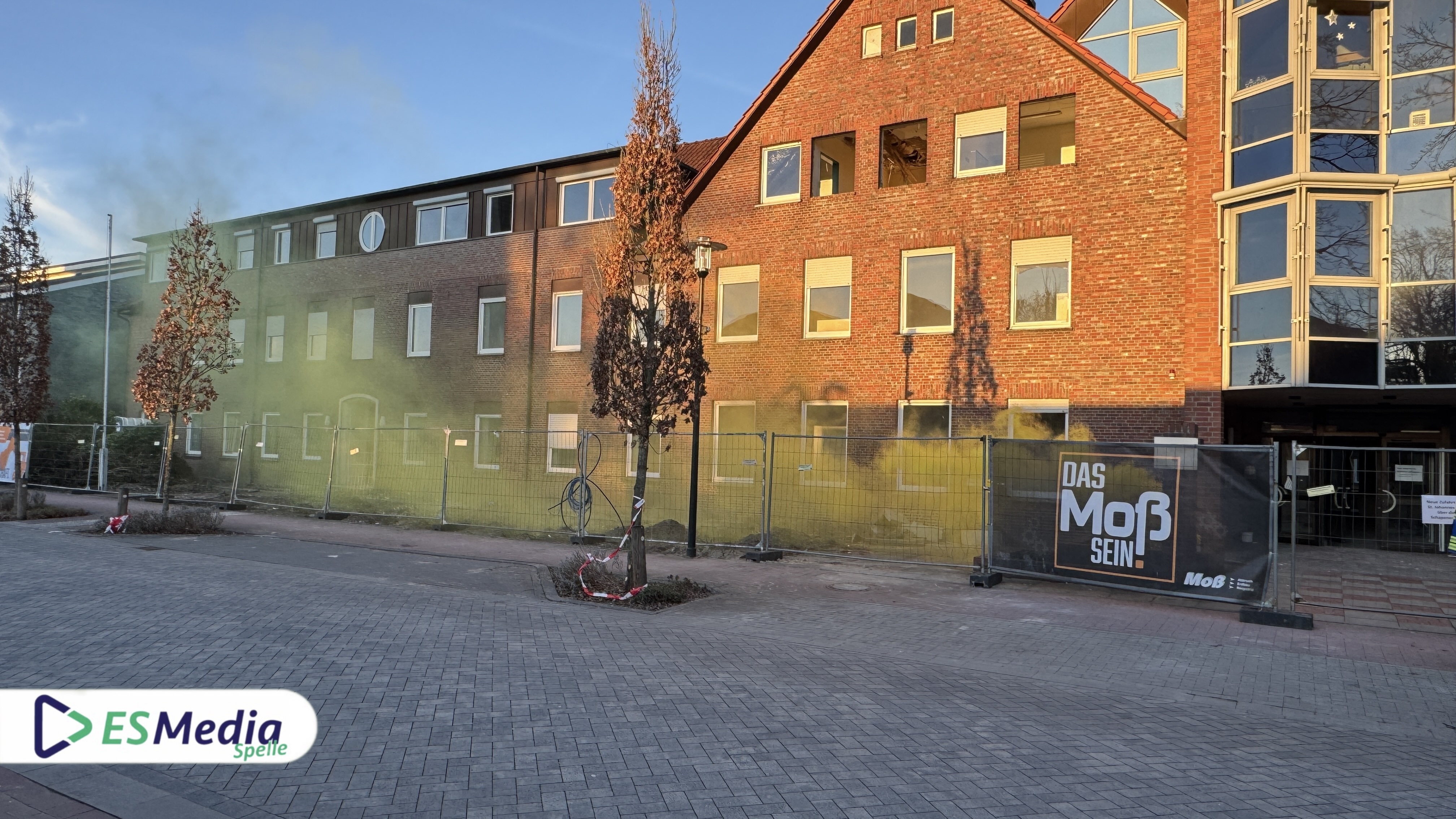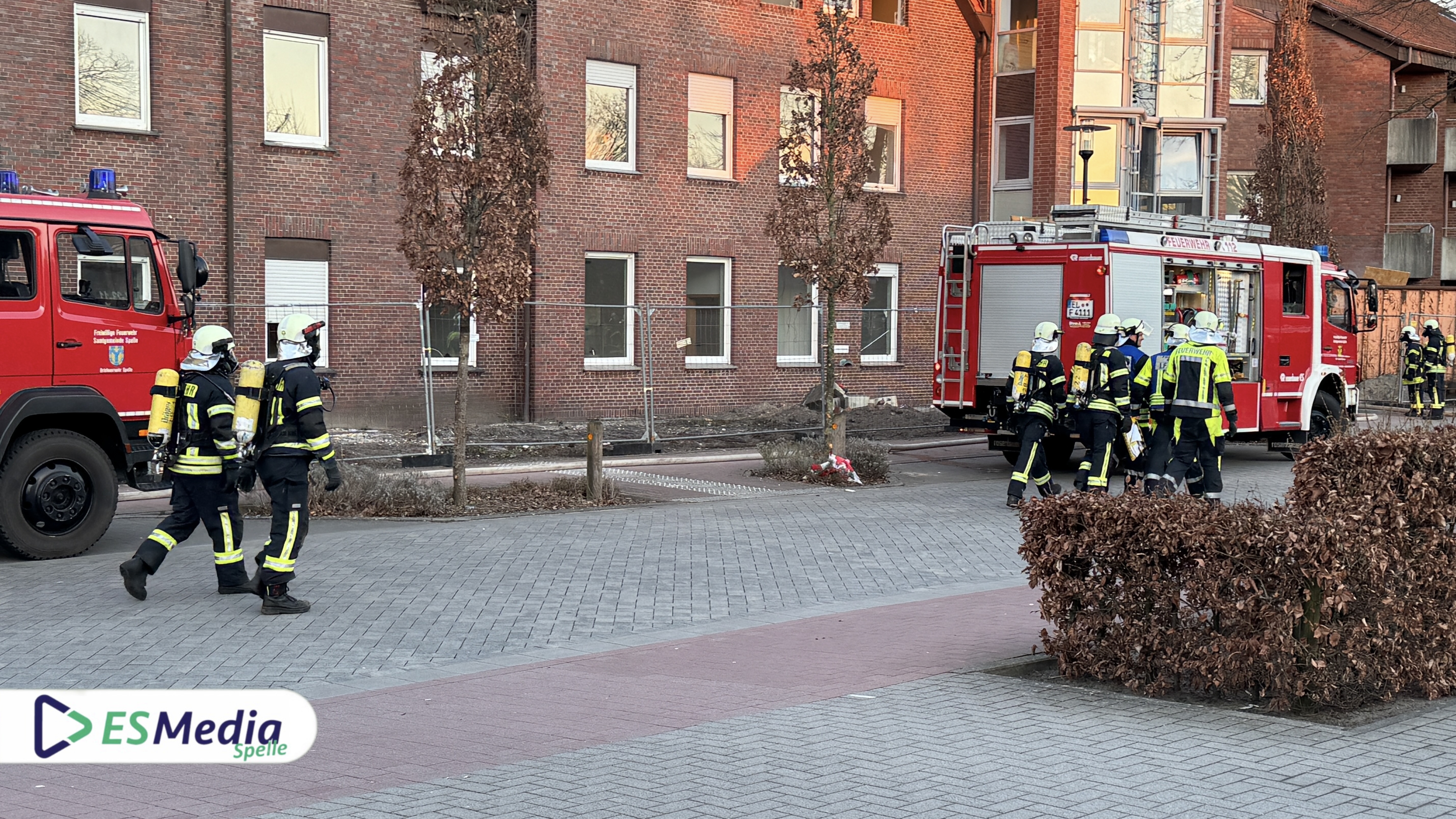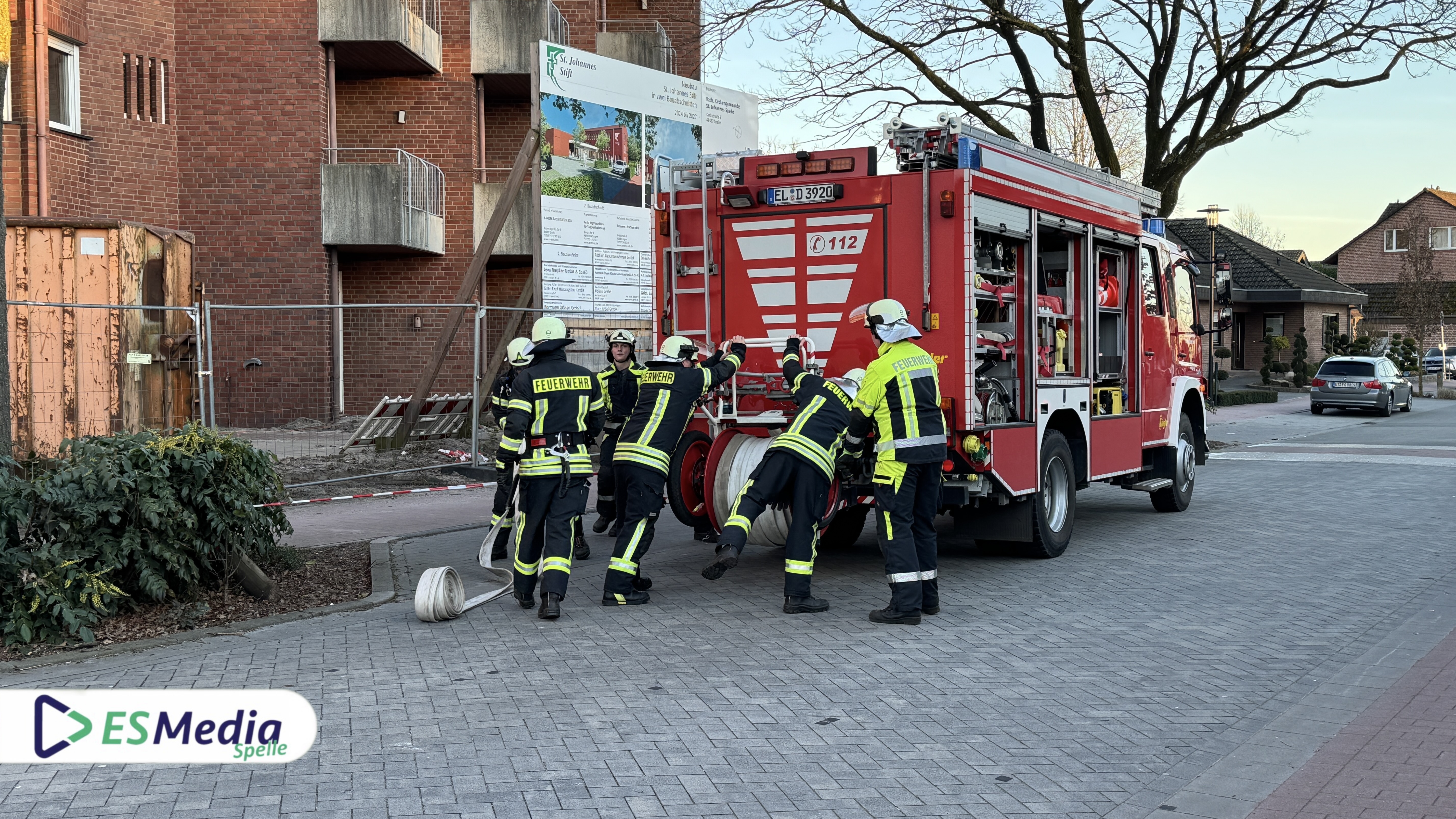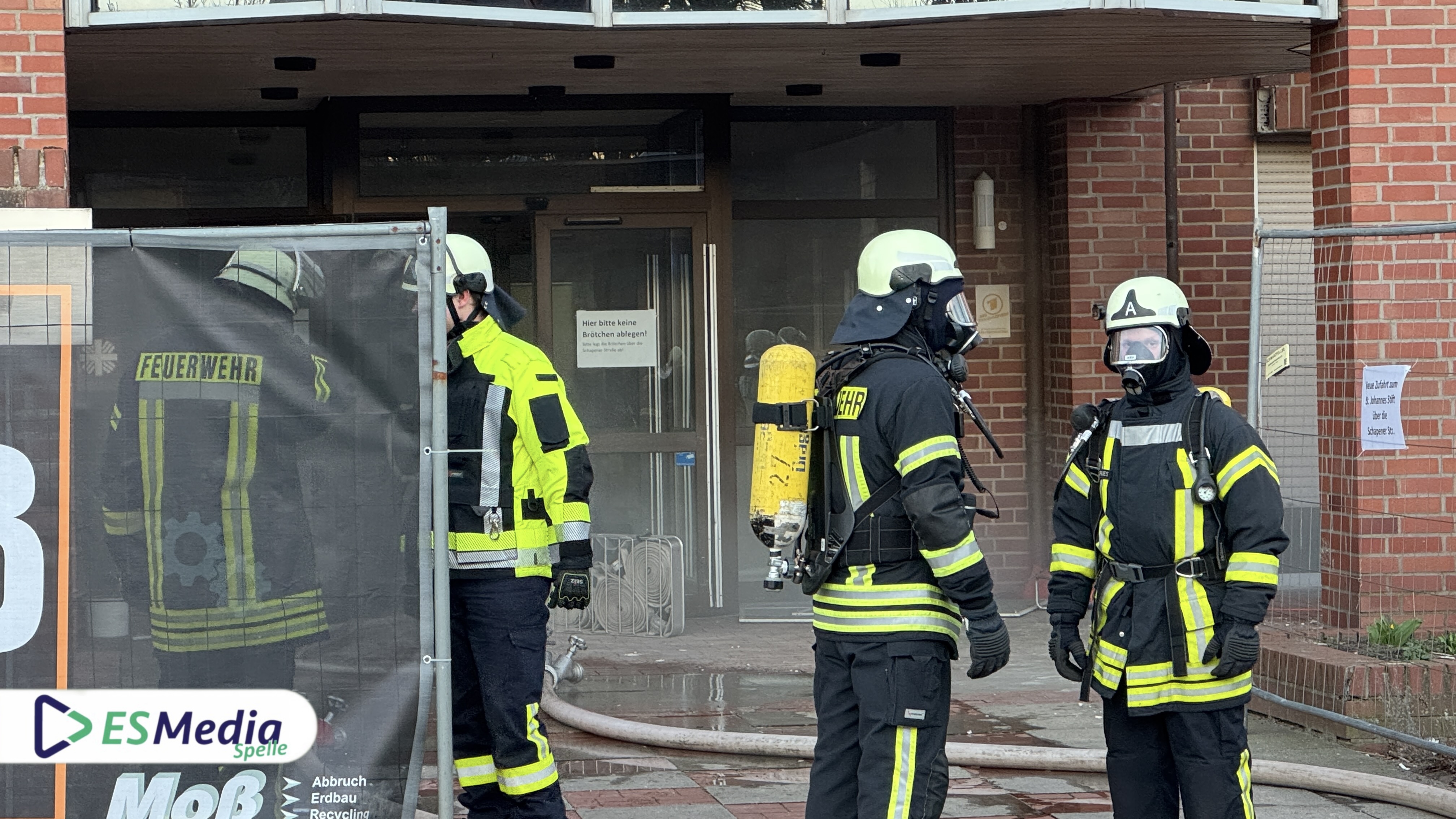 Als Übungsobjekt diente das leerstehende Gebäude des St.-Johannes-Stift an der Johannesstraße in Spelle, das in Kürze abgerissen werden soll. Die besondere Lage des Objekts ermöglichte es, ein realistisches Einsatzszenario darzustellen.