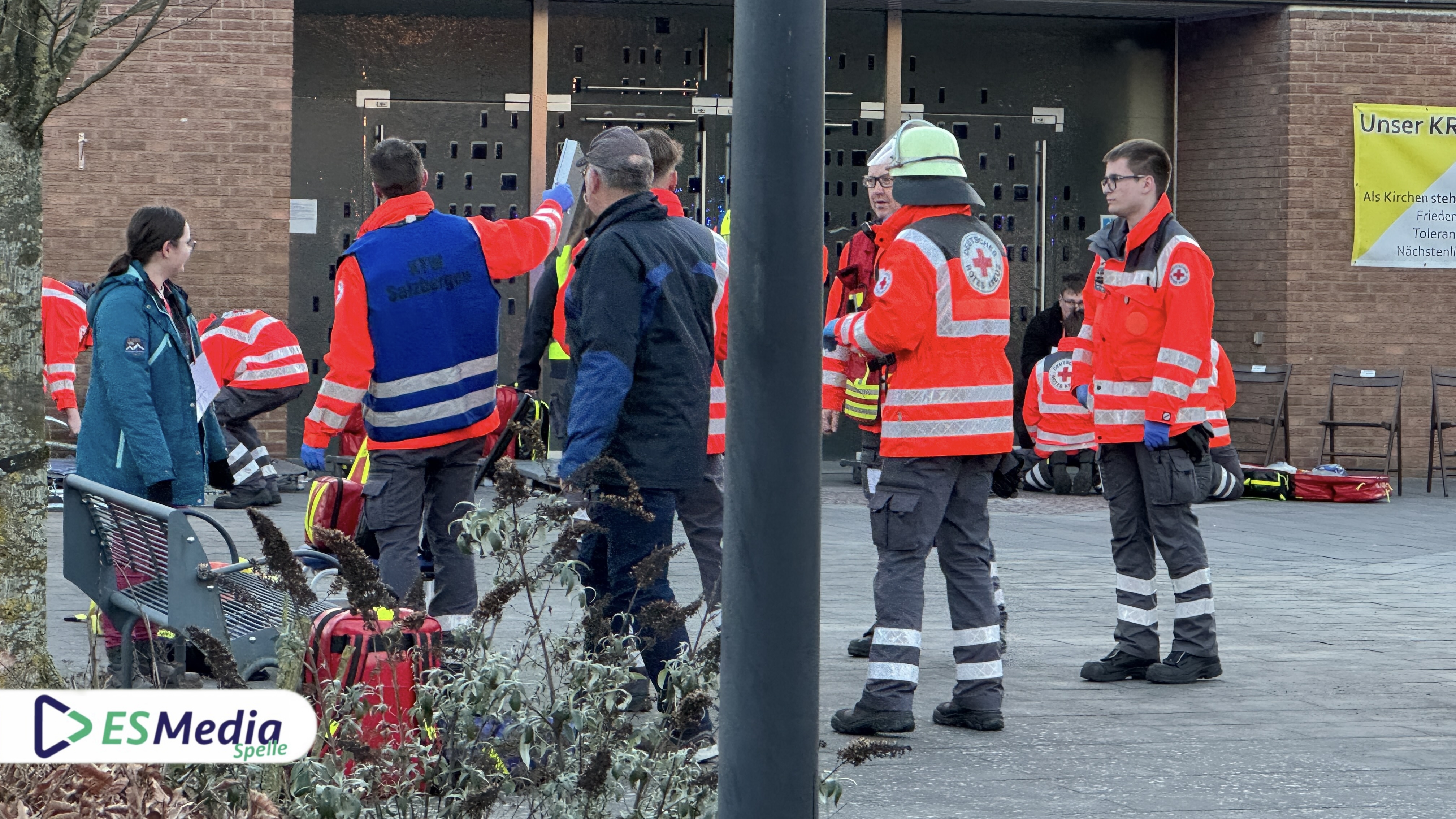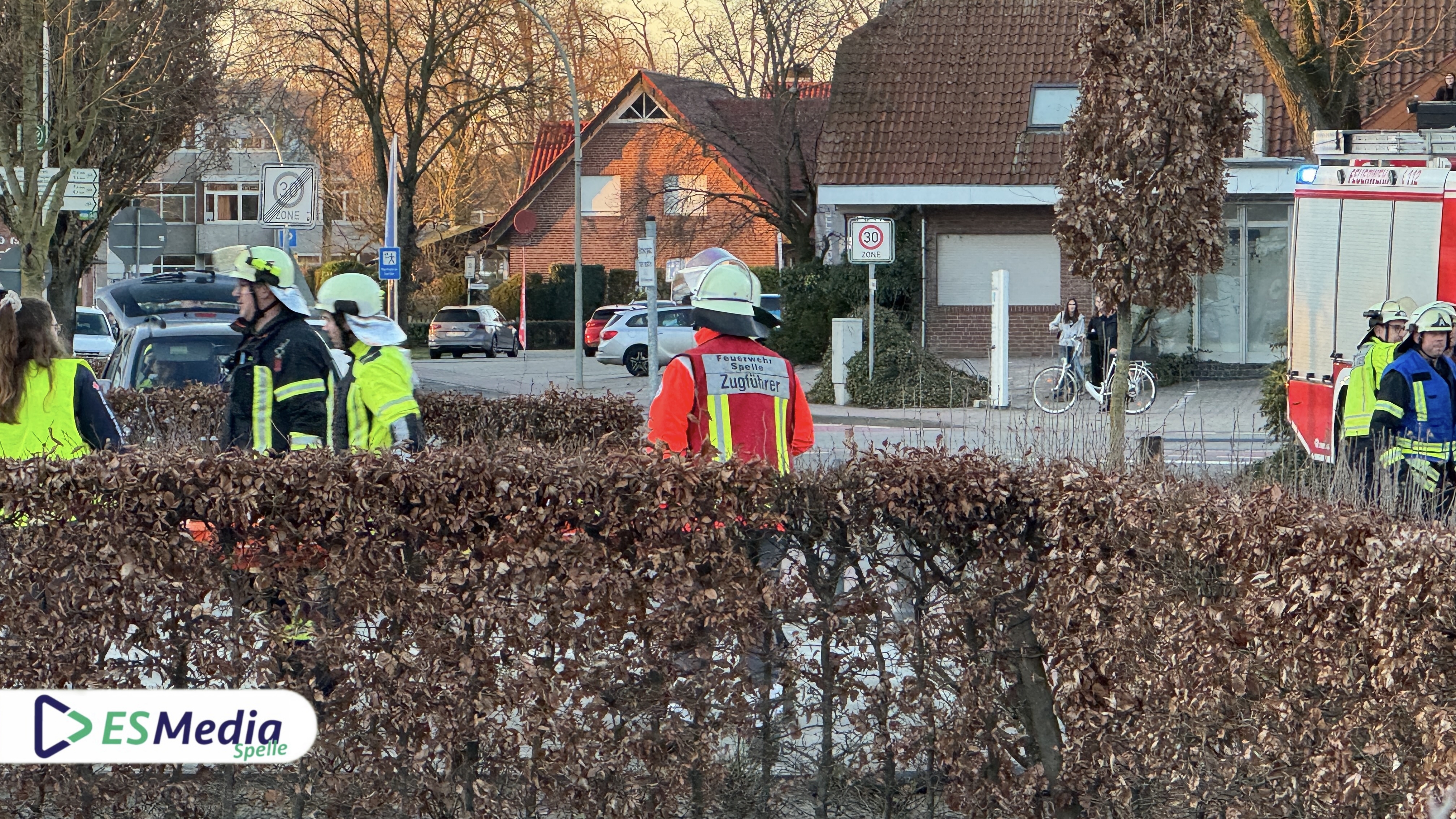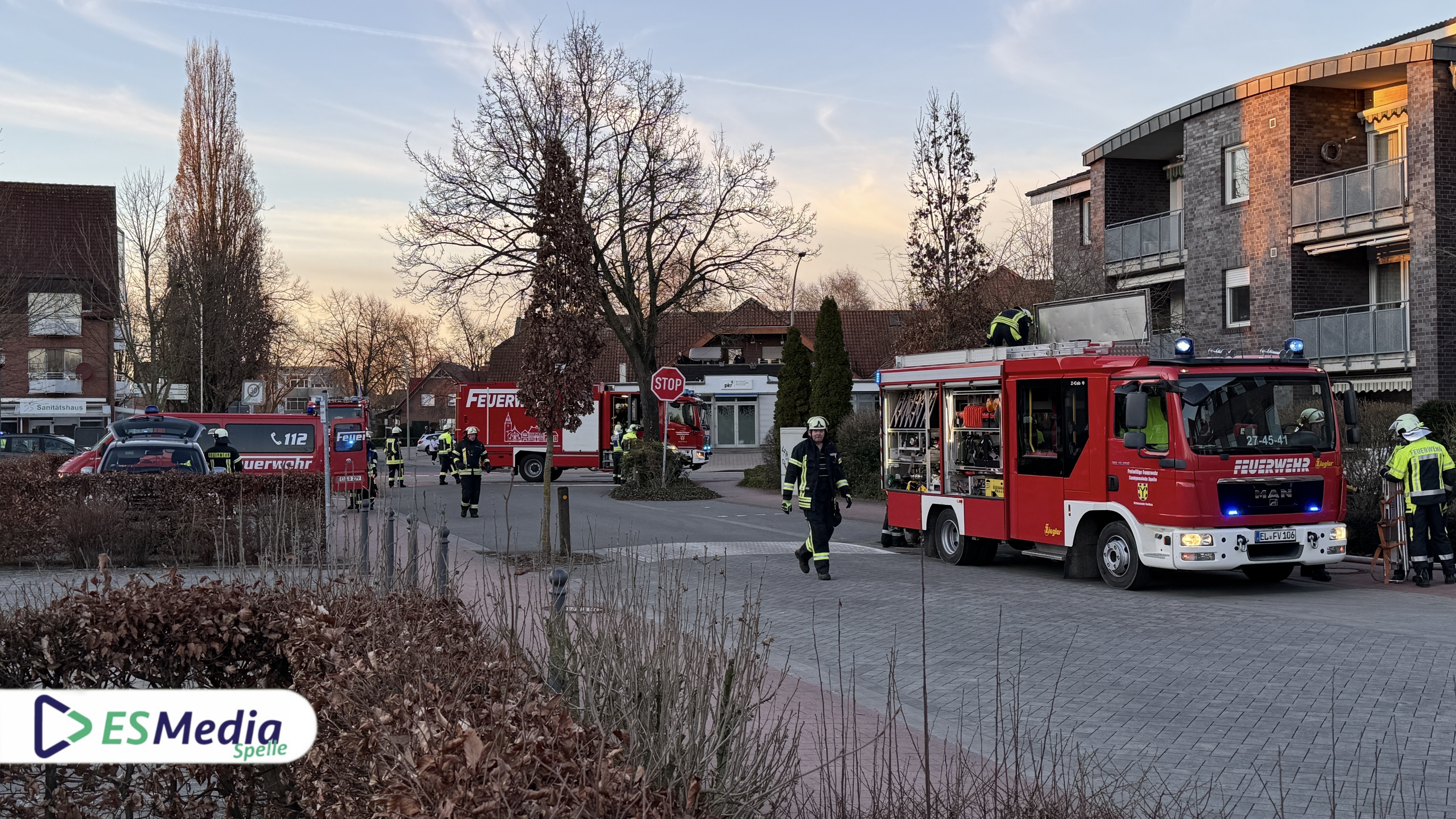 Spelle. Im Rahmen einer groß angelegten Samtgemeindeübung trainierten am Montagabend gegen 17:30 Uhr die Einsatzkräfte der Freiwilligen Feuerwehren Spelle, Venhaus, Lünne und Schapen gemeinsam mit dem Deutschen Roten Kreuz (DRK) Spelle ihre Einsatzabläufe und -taktiken unter nahezu realen Bedingungen.