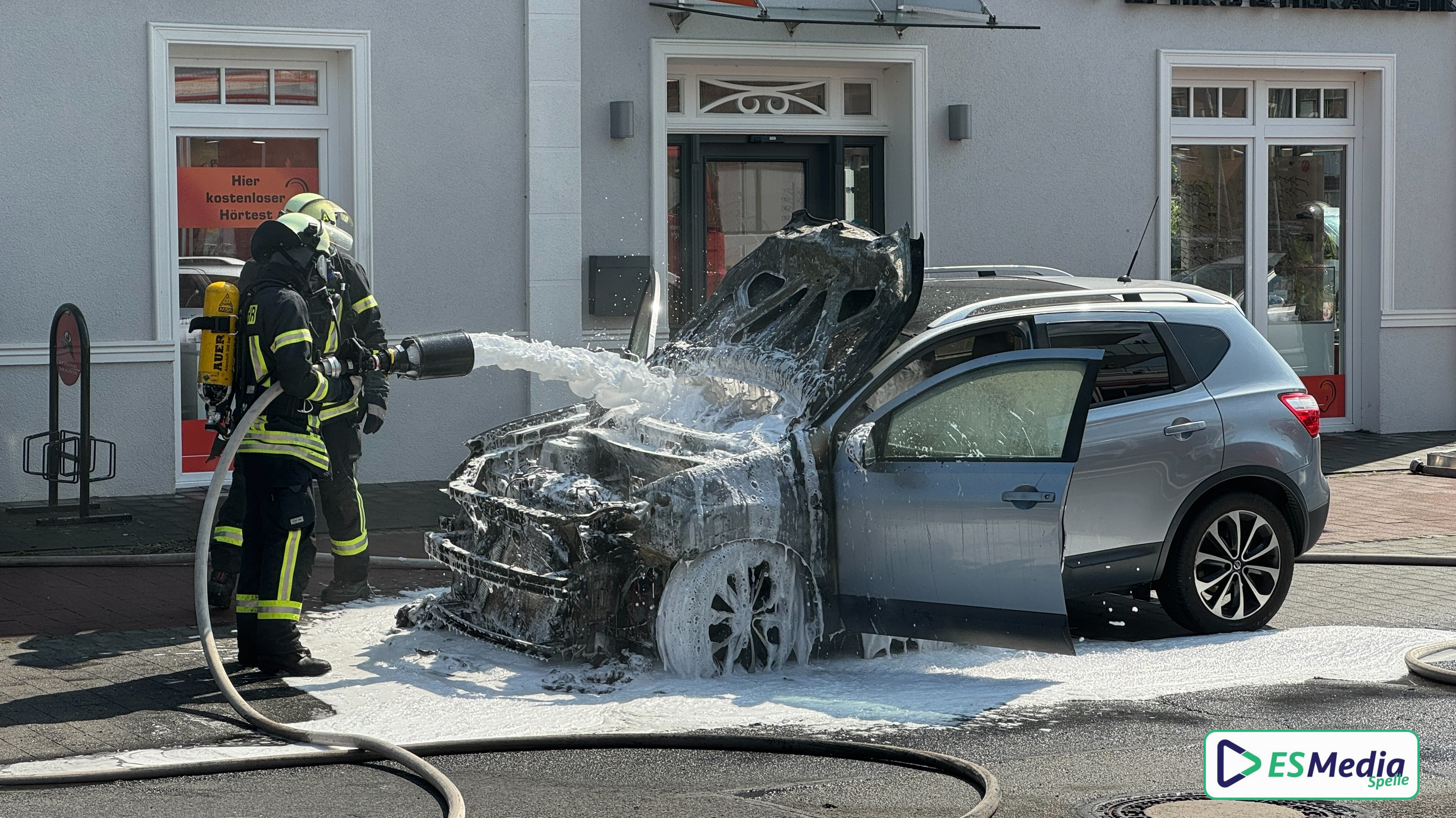 Pkw-Brand ruft die Feuerwehr Spelle auf den Plan.