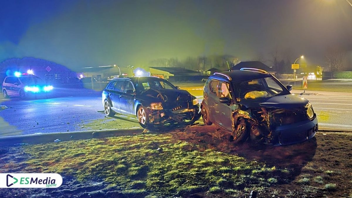 Nach Angaben der Polizei befuhr ein 47-jähriger Fahrer eines Audi A6 die Nordumgehung aus Richtung Spelle kommend in Fahrtrichtung Venhaus. Zeitgleich beabsichtigte ein 64-jähriger Fahrer eines Suzuki Ignis, von der Nordumgehung nach links in den Löchteweg abzubiegen. Dabei übersah er offenbar den entgegenkommenden Audi, sodass es zu einem Frontalzusammenstoß der beiden Fahrzeuge kam.
